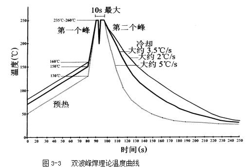 焊接溫度和時(shí)間是形成良好焊點(diǎn)的首要條件。焊接溫度和時(shí)間與預(yù)熱溫度、焊料波的溫度、傾斜角度、傳輸速度都有關(guān)系。綜合調(diào)整工藝參數(shù)時(shí)首先要保證焊接溫度和時(shí)間。雙波峰焊的第一個(gè)波峰一般在235~240℃/1s左右,第二個(gè)波峰—般在240-260℃/3s左右。