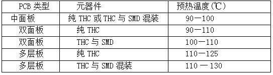 印制板預(yù)熱溫度和時(shí)間要根據(jù)印制板的大小、厚度、元器件的大小和多少,以及貼裝元器件的多少來(lái)確定。預(yù)熱溫度在90—130℃(PCB表面溫度),多層板及有較多貼裝元器件時(shí)預(yù)熱溫度取上限。預(yù)熱時(shí)間由傳送帶速度來(lái)控制。如預(yù)熱溫度偏低或和預(yù)熱時(shí)間過短,焊劑中的溶劑揮發(fā)不充分,焊接時(shí)產(chǎn)生氣體引 起氣孔、錫珠等焊接缺陷;如預(yù)熱溫度偏高或預(yù)熱時(shí) 間過長(zhǎng),焊劑被提前分解,使焊劑失去活性,同樣會(huì)引起毛刺、橋接等焊接缺陷。因此,要恰當(dāng)控制頂熱溫度和時(shí)間,最佳的預(yù)熱溫度是在波峰焊前涂覆在PCB底面的焊劑帶有粘性(見表3-1)。