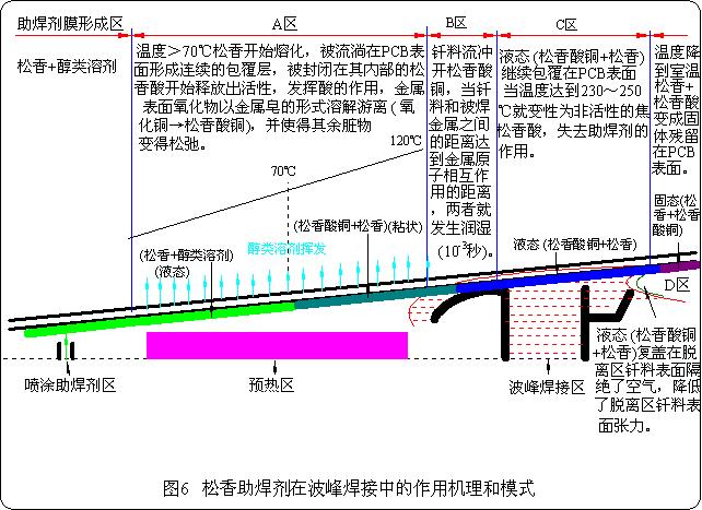 免清洗助焊劑在波峰焊接中的作用機(jī)理與模式的描述如圖8所示。