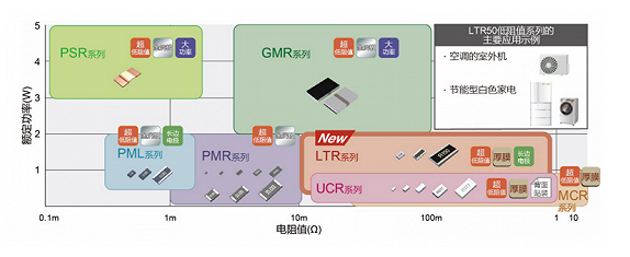 全球知名半導體制造商ROHM(總部位于日本京都)推出10~910mΩ大功率長邊厚膜貼片電阻器“LTR50低阻值系列(阻值48)”,該系列產(chǎn)品非常適用于變頻空調的室外機和節(jié)能型白色家電等的電流檢測。