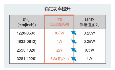 通過改善電阻體材料,不僅實現(xiàn)了2550(寬2.5×長5.0×高0.55mm)的小巧尺寸,與以往產(chǎn)品MCR50低阻值系列(0.5W)相比,還實現(xiàn)了4倍的額定功率(達2W)。因此可將以往產(chǎn)品替換為小尺寸產(chǎn)品。